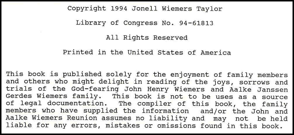 Wiemers Family Heritage Book: For information conta